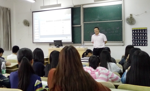为培养学生的创业意识和提高项目实践能力,外语外贸系组织2015级移动商务专业同学举行“微营销实战技巧”讲座,邀请沙县百胜电子商务公司经理邓伟文先生担任主讲人。