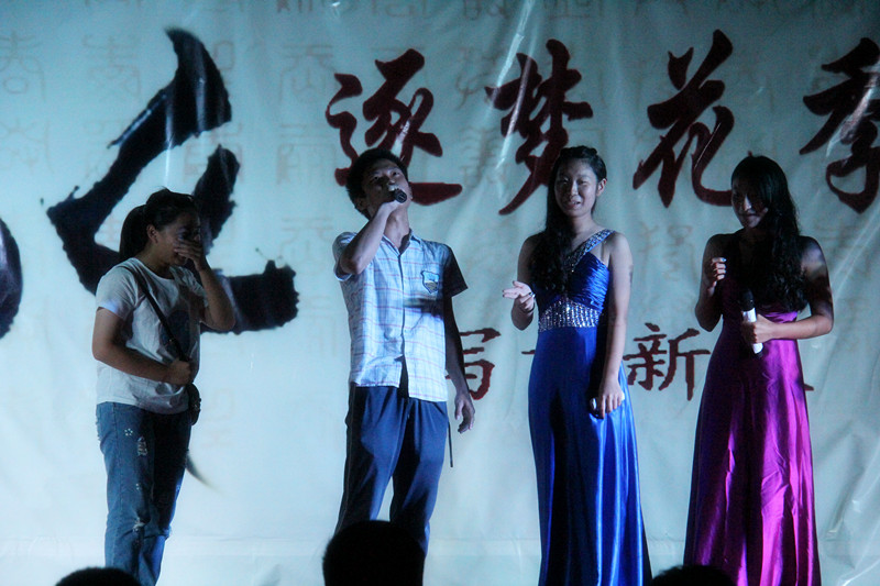 晚会在乐队的激情演奏中拉开序幕,有数码宝贝主题曲《Buttyfly》,有炫酷十足的RAP《嗨嗨人生》,有嘻哈动漫社COS女孩的热舞《新不了情》和《海阔天空》;还有双节棍、街舞和古筝等表演,为晚会现场掀起阵阵高潮!由新生带来的歌曲《123木头人》、《父亲》让人印象深刻。最后,晚会在刘成城、肖梦云老师以及系团总支、学生会、自律会全体干部大合唱的歌曲《朋友》声中温馨地结束。