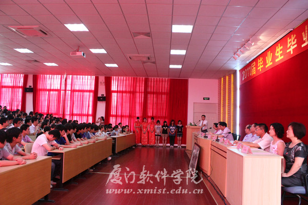 毕业典礼设了两个分会场,并进行同步转播。仪式由李副院长主持,林副院长宣读《2011届优秀毕业生表彰决定》。参加毕业典礼的还有有关部门负责人、教师代表、全体辅导员、毕业生代表等。(院办)
