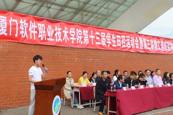 运动员代表经管系许世军同学、裁判员代表林军老师先后庄严宣誓,表示将秉承我校体育竞赛的宗旨,赛出厦软风格、赛出厦软友谊、赛出厦软成绩。最后,党委书记蔡良山宣布,厦门软件职业技术学院第十三届学生田径运动会暨第三届教工趣味运动会正式开幕!