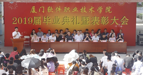 6月20日,厦门软件职业技术学院在学校教学楼长廊隆重举行2019届毕业典礼暨优秀毕业生表彰大会。执行校长郑通涛教授、党委书记蔡良山、副校长王杰华、学校中层干部、教职工代表以及全体毕业生齐聚一堂,共同见证2019届毕业生的收获时刻,欢送新一届的厦软学子踏上人生的新征程。毕业典礼由副校长王杰华主持。