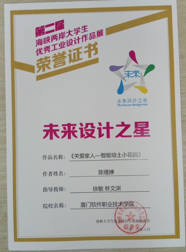本次大赛中,我系参赛作品四十件,入围作品十六件,其中陈煜婷同学获得未来设计之星的荣誉称号。本次工业设计大赛也对我系学生在今后的学习中起到了实质性促进作用,同时也激励着学生在专业知识上能够增添更多的元素。(设计艺术系 张劲航)